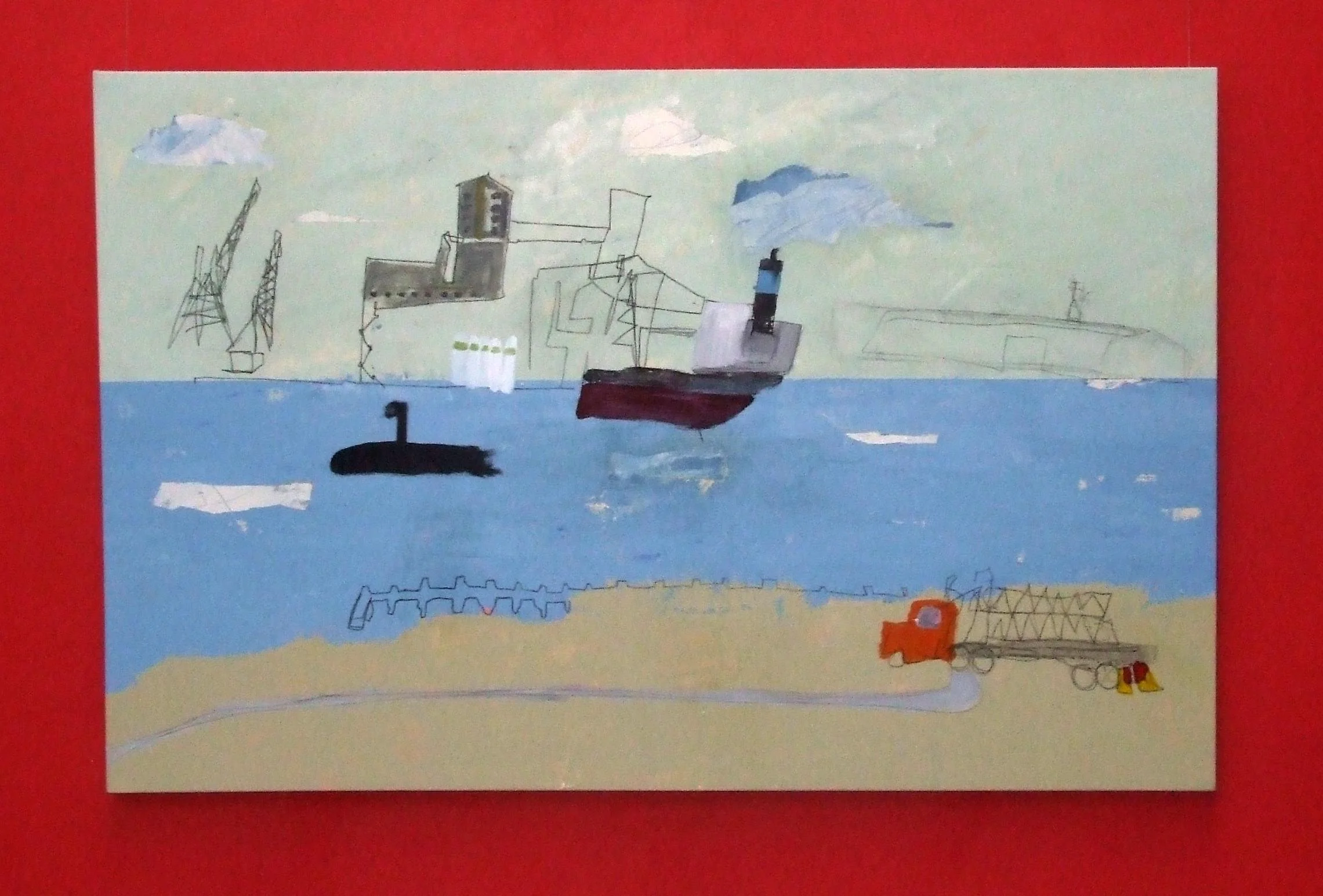 Amanda Reeves, Harbour, 2006, housepaint, charcoal, chinagraph and acrylic paint on canvas, 170 × 111 cm.