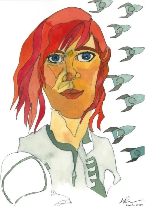 Amanda Reeves, Redheads for a Red Planet, 2016, ink and watercolour on watercolour paper, 21.0 × 29.7 cm